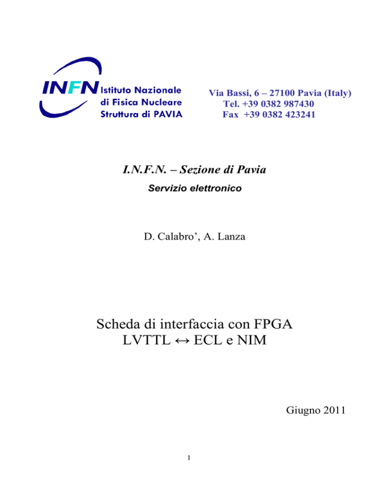 Via Bassi, 6 – 27100 Pavia (Italy) Tel. +39 0382 987430 Fax +39 0382 423241 I.N.F.N. – Sezione di Pavia Servizio elettronico D. Calabro’, A. Lanza Scheda di interfaccia con FPGA LVTTL ↔ ECL e NIM Giugno 2011 1 Progettazione e costruzione parti elettriche, elettroniche e meccaniche: Domenico Calabrò Bench-test: A. Lanza Indice 1 Introduzione 2 Funzionamento 3 Bench Test 4 Schemi elettrici 5 Layout PCB 6 Dimensionamento parti meccaniche 7 Fotografie 2 1. Introduzione La scheda di interfaccia LVTTL e’ un modulo VME standard progettato per interfacciare un sistema di trigger basato su fotomoltiplicatori con una logica FPGA. Lo scopo e’ quello di avere segnali LVTTL generati dalla logica e convertirli in segnali ECL e NIM e viceversa, creando cosi’ una scheda di impieghi generali a logica programmabile. Il modulo fornisce 20 canali uguali, ciascuno configurabile attraverso ponticelli interni come ingresso LVTTL e uscita NIM e ECL, oppure come ingresso NIM o ECL e uscita LVTTL. La FPGA adottata e’ una Spartan 3AN della Xilinx, installata su una scheda dimostrativa 3A Starter Kit che fornisce le necessarie interfacce esterne per segnali LVTTL, la quale e’ stata alloggiata all’interno di un contenitore alto 3U. Il display, i pulsanti, e i connettori di I/O della scheda dimostrativa sono stati portati sul pannello frontale del contenitore attraverso coppie di fili twisted per ridurre le interferenze elettromagnetiche. Sul pannello posteriore del contenitore sono presenti il connettore RJ45, che consente la connessione alla rete informatica, e il connettore USB con il quale e’ possibile programmare la logica FPGA attraverso un programma dedicato. 2. Funzionamento Dallo schema elettrico, visibile in fig. x, il singolo canale si puo’ suddividere in 4 parti: Conversione LVTTLÆECL; Conversione ECLÆ NIM; Conversione NIMÆ ECL; Conversione ECLÆ LVTTL. L’I/O dei segnali LVTTL provenienti dalla logica FPGA avviene attraverso un cavo ECL da 20 doppini che si connette al connettore J22, situato in basso sul frontalino della scheda (pagina 11 dello schema). Il prelevamento del segnale LVTTL, convertito in ECL tramite l’integrato MC100EPT24 (U1 per il primo canale) e’ posto sull’uscita del connettore J24, che e’ in alto sul frontalino della scheda. Prelevando questo segnale d’uscita ECL e’ possibile convertirlo in un segnale NIM attraverso un transistore bipolare npn 2N2369 (T1 per il primo canale), che passa dallo stato di saturazione a quello di interdizione e viceversa fornendo al carico d’uscita ( 50Ω sulla scheda e 50Ω esterni a terminare il cavo coassiale) i 32 mA necessari per avere gli 800mV come da specifiche NIM. Un segnale NIM viene convertito in un segnale ECL attraverso la polarizzazione del transistore bipolare npn 2N918 (T2 per il primo canale), che lavora sempre in zona di conduzione. Il diodo Schottky sul collettore porta il valore di tensione all’ingresso dell’integrato MC100EPT25 (U2 per il primo canale) a circa -1V sullo stato alto e -1.8V su quello basso, 3 ovvero un segnale ECL. Il succitato integrato converte un segnale ECL in ingresso in un segnale LVTTL in uscita. I segnali ECL da convertire in LVTTL possono essere anche iniettati direttamente attraverso il connettore J23, posto al centro del frontalino della scheda. La tipologia di conversione e’ selezionata attraverso un interruttore quadruplo a stato solido, ADG333A (U3 per il primo canale). L’inconveniente di questo interruttore e’ l’alta resistenza serie, che varia proporzionalmente con la tensione di alimentazione e a 5V vale circa 50Ω. Essa fa da partitore con la terminazione NIM, di analogo valore, costringendo ad utilizzare alte tensioni di polarizzazione nel transistori per evitare una caduta di tensione eccessiva. Con il connettore JPB e’ possibile selezionare ciascuno dei 20 canali come ingresso o uscita LVTTL. Il cavallotto installato configura il canale come ingresso NIM o ECL e uscita LVTTL, la sua assenza l’opposto. Il connettore JPF seleziona la tipologia di ingresso del convertitore ECLÆLVTTL, con il cavallotto inserito l’ingresso e’ ECL, senza cavallotto e’ NIM. Sull’uscita ECL dell’integrato MC100EPT24 sono presenti due reti resistite da 100Ω in parallelo. L’impedenza di uscita della linea ECL puo’ quindi essere selezionata a 50 o 100Ω semplicemente installando una o entrambe le reti resistive. Sulla scheda sono presenti, oltre alle alimentazioni standard VME ± 12V e +5V, altre tensioni: ± 3.3V; -2V e -5V. In particolare, le tensioni ±3.3V alimentano gli integrati di conversione, il 5V e’ necessario per la polarizzazione dei transistori e i -2V polarizzano le reti resistive di terminazione ECL. Come visibile nello schema, esse sono ottenute utilizzando dei convertitori DC/DC. 3. Bench Test Sono stati fatti diversi tipi di test nelle varie tipologie di conversioni per vedere la deformazione e il ritardo della forma d’onda convertita in uscita rispetto al segnale in ingresso. Il test per vedere il ritardo massimo di propagazione e’ stato fatto attraverso tutta la serie di conversioni: NIM Æ ECL Æ LVTTL Æ ECL Æ NIM. Si e’ posto su un ingresso, ad esempio J10, un livello NIM, il quale e’ convertito in segnale ECL attraverso il transistor T20, e successivamente convertito in segnale LVTTL da U30 se il ponticello JPF9 (ECL/NIM, vicino al connettore di alimentazione) e’ disinserito. Inoltre, inserendo il ponticello JPB10 (IN/OUT), questo segnale LVTTL viene inviato in uscita al pin 10 del connettore J22. Questa uscita a sua volta viene inviata al pin 9, sempre del connettore J22, trasformandolo in un ingresso LVTTL semplicemente togliendo il ponticello JBB9. Il segnale, convertito in ECL da U26 e successivamente in NIM dal transistore T17, viene letto sul connettore J9. Nella pagina successiva vengono visualizzate le forma d’onda dei segnali di ingresso (giallo) e di uscita (azzurro) con i relativi valori. 4 5 LVTTL-ECL EC