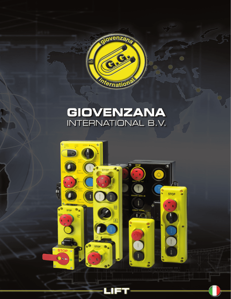 LIFT tional b na w.gioven .v. za er ww n GM092BYPASS IP65 DESCRIZIONE COMMUTATORI Tensione nominale d’impiego Ue [V]: 690 Tensione nominale d’isolamento Ui [V]: 690 Tensione nominale di tenuta ad impulso Uimp [kV]: 4 Corrente nominale termica Ith [A]: 20 Corrente nominale termica in cassetta Ithe [A]: 16 Frequenza [Hz]: 50/60 SCHEMA Dispositivo bypass sicurezze per uso manutenzione EN 81.20 e 81.50 Commutatore 1 - 2 GM243 Tecnologia Lift in m www.gio co v a. e venzana.co t m g io w. za ven na io .com w g nzana w IP54 0 1 DESCRIZIONE SCHEMA 1 Presa Schuko Europa 16A COMMUTATORI Tensione nominale d’impiego Ue [V]: 690 Tensione nominale d’isolamento Ui [V]: 690 Tensione nominale di tenuta ad impulso Uimp [kV]: 4 Corrente nominale termica Ith [A]: 20 Corrente nominale termica in cassetta Ithe [A]: 16 Frequenza [Hz]: 50/60 1 Presa Cenelec Francia GM243/FR 1 Presa America GM243/US 1 Presa Svizzera GM243/SW 1 Presa Inghilterra GM243/UK 1 Presa Australia-Cina GM243/CH Commutatore 0-1 commutazione 90° con: 0 1 17 DISPOSITIVI DI FOSSA, LOCALE RINVIO E PULSANTIERE DI MANUTENZIONE - Serie GM GM483 IP65 DESCRIZIONE SCHEMA Segnale LED verde 24V AC/DC con: AC/DC 24V 1 Pulsante Salita - 1NA 1 Pulsante Discesa - 1NA 1 Commutatore 1-2 con commutazione 90° 2NA + 2NC 1 2 GM488 IP65 DESCRIZIONE SCHEMA Emergenza EN ISO 13850 Ø 30 sblocco a rotazione con: 1 Pulsante Salita - 2NA 1 Pulsante Discesa - 2NA 1 Commutatore 1-0-2 con commutazione 90° 2NA + 2NC 18 1 0 2 COMMUTATORI Tensione nominale d’impiego Ue [V]: 690 Tensione nominale d’isolamento Ui [V]: 690 Tensione nominale di tenuta ad impulso Uimp [kV]: 4 Corrente nominale termica Ith [A]: 20 Corrente nominale termica in cassetta Ithe [A]: 16 Frequenza [Hz]: 50/60 ELEMENTI DI CONTATTO Tensione nominale d’impiego Ue [V]: 690 Tensione nominale d’isolamento Ui [V]: 690 Tensione nominale di tenuta ad impulso Uimp [kV]: 4 Corrente nominale termica Ith [A]: 16 Corrente nominale termica Ithe [A]: 16 Frequenza [Hz]: 50/60 Corrente nominale d’impiego: AC 15 – DC 13 COMMUTATORI Tensione nominale d’impiego Ue [V]: 690 Tensione nominale d’isolamento Ui [V]: 690 Tensione nominale di tenuta ad impulso Uimp [kV]: 4 Corrente nominale termica Ith [A]: 20 Corrente nominale termica in cassetta Ithe [A]: 16 Frequenza [Hz]: 50/60 ELEMENTI DI CONTATTO Tensione nominale d’impiego Ue [V]: 690 Tensione nominale d’isolamento Ui [V]: 690 Tensione nominale di tenuta ad impulso Uimp [kV]: 4 Corrente nominale termica Ith [A]: 16 Corrente nominale termica Ithe [A]: 16 Frequenza [Hz]: 50/60 Corrente nominale d’impiego: AC 15 – DC 13 tional b na w.gioven .v. za er ww n TLP2 DESCRIZIONE Tecnologia Lift in m www.gio co v a. e venzana.co t m g io w. za ven na io .com w g nzana w IP65 SCHEMA 1 Pulsante Salita - 1NA 1 Pulsante Discesa - 1NA ELEMENTI DI CONTATTO Tensione nominale d’impiego Ue [V]: 690 Tensione nominale d’isolamento Ui [V]: 690 Tensione nominale di tenuta ad impulso Uimp [kV]: 4 Corrente nominale termica Ith [A]: 16 Corrente nominale termica Ithe [A]: 16 Frequenza [Hz]: 50/60 Corrente nominale d’impiego: AC 15 – DC 13 TLP3.B IP65 DESCRIZIONE SCHEMA ELEMENTI DI CONTATTO Tensione nominale d’impiego Ue [V]: 690 Tensione nominale d’isolamento Ui [V]: 690 Tensione nominale di tenuta ad impulso Uimp [kV]: 4 Corrente nominale termica Ith [A]: 16 Corrente nominale termica Ithe [A]: 16 Frequenza [Hz]: 50/60 Corrente nominale d’impiego: AC 15 – DC 13 SCHEMA ELEMENTI DI CONTATTO Tensione nominale d’impiego Ue [V]: 690 Tensione nominale d’isolamento Ui [V]: 690 Tensione nominale di tenuta ad impulso Uimp [kV]: 4 Corrente nominale termica Ith [A]: 16 Corrente nominale termica Ithe [A]: 16 Frequenza [Hz]: 50/60 Corrente nominale d’impiego: AC 15 – DC 13 Emergenza EN ISO 13850 a fungo Ø 30 sblocco a rotazione 1 Pulsante Salita - 1NA 1 Pulsante Discesa - 1NA TLP3.D DESCRIZIONE Selettore a manopola 1 Pulsante Salita - 1NA 1 Pulsante Discesa - 1NA 35 PULSANTIERE PENSILI - Serie TLP TLP4.A IP65 DESCRIZIONE SCHEMA ELEMENTI DI CONTATTO Tensione nominale d’impiego Ue [V]: 690 Tensione nominale d’isolamento Ui [V]: 690 Tensione nominale di tenuta ad impulso Uimp [kV]: 4 Corrente nominale termica Ith [A]: 16 Corrente nominale termica Ithe [A]: 16 Frequenza [Hz]: 50/60 Corrente nominale d’impiego: AC 15 – DC 13 IP65 COMMUTATORI Tensione nominale d’impiego Ue [V]: 690 Tensione nominale d’isolamento Ui [V]: 690 Tensione nominale di tenuta ad impulso Uimp [kV]: 4 Corrente nominale termica Ith [A]: 20 Corrente nominale termica in cassetta Ithe [A]: 16 Frequenza [Hz]: 50/60 Emergenza EN ISO 13850 fungo Ø 30 sblocco a rotazione con: 1 Pulsante Salita - 1NA 1 Pulsante Discesa - 1NA 1 Pulsante Consenso - 1NA TLP4 DESCRIZIONE SCHEMA Emergenza EN ISO 13850 fungo Ø 30 sblocco a rotazione con: 1 Commutatore 1-2 commutazione 90° 3NA+3NC 1 ELEMENTI DI CONTATTO Tensione nominale d’impiego Ue [V]: 690 Tensione nominale d’isolamento Ui [V]: 690 Tensione nominale di tenuta ad impulso Uimp [kV]: 4 Corrente nominale termica Ith [A]: 16 Corrente nominale termica Ithe [A]: 16 Frequenza [Hz]: 50/60 Corrente nominale d’impiego: AC 15 – DC 13 2 1 Pulsante Salita - 1NA 1 Pulsante Discesa - 1NA TLP5 IP65 DESCRIZIONE SCHEMA Emergenza EN ISO 13850 fungo Ø 40 visione pushpull con: 1 Commutatore 1-2 commutazione 90° 3NA+3NC 1 Pulsante Consenso - 1NA 1 Pulsante Salita - 2NA 1 Pulsante Discesa - 2NA 36 1 COMMUTATORI Tensione nominale d’impiego Ue [V]: 690 Tensione nominale d’isolamento Ui [V]: 690 Tensione nominale di tenuta ad impulso Uimp [kV]: 4 Corrente nominale termica Ith [A]: 20 Corrente nominale termica in cassetta Ithe [A]: 16 Frequenza [Hz]: 50/60 2 ELEMENTI DI CONTATTO Tensione nominale d’impiego Ue [V]: 690 Tensione nominale d’isolamento Ui [V]: 690 Tensione nominale di tenuta ad impulso Uimp [kV]: 4 Corrente nominale termica Ith [A]: 16 Corrente nominale termica Ithe [A]: 16 Frequenza [Hz]: 50/60 Corrente nominale d’impiego: AC 15 