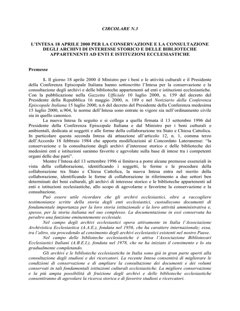 ecclesiastici, per il tramite delle Soprintendenze archivistiche, collaborazione tecnica e