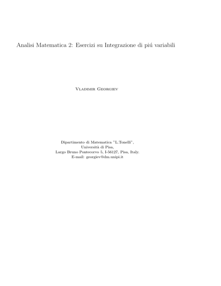 Analisi Matematica 2: Esercizi su Integrazione di piú variabili