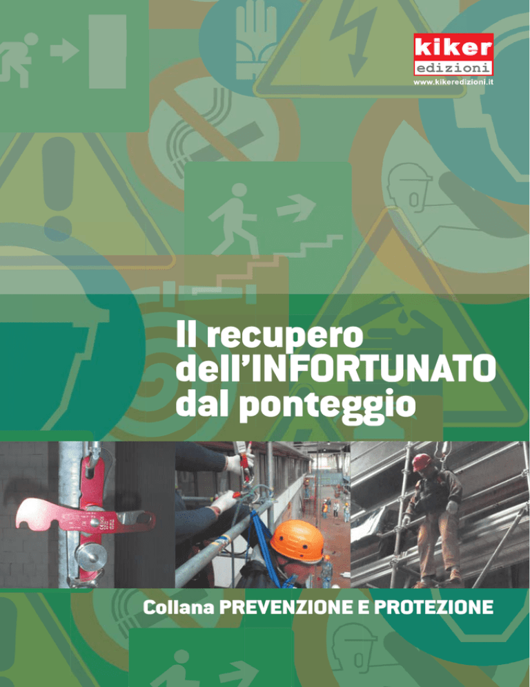 kiker Il recupero dell’INFORTUNATO dal ponteggio Collana PREVENZIONE E PROTEZIONE Recupero dell’INFORTUNATO dal ponteggio “KIT” DI SOCCORSO Le procedure di salvataggio, comprendono una serie di operazioni semplici ma che potrebbero essere complicate dalla paura di sbagliare e dal panico procurato dalla consapevolezza di avere un limitatissimo tempo di intervento. Per facilitare l’attività di soccorso, esistono in commercio diversi prodotti, sacche/zaini costituenti veri e propri “kit di soccorso”, studiati con lo scopo di fornire un semplice e valido aiuto per tutti i potenziali utilizzatori. L’utilizzo di questi sistemi, definiti “antipanico”, permetterà di evitare grossolani errori che, in situazioni di questo tipo, potrebbero compromettere l’intervento di emergenza risultando fatali per l’infortunato. PER EFFETTUARE LA MANOVRA DI EMERGENZA E SALVATAGGIO LA DOTAZIONE MINIMA È: una corda statica Ø 10 - 11 mm (EN 1891-A) minimo m 25 asole cucite; un assicuratore discensore auto-frenante (con funzione antipanico) (EN 341-A); quattro connettori (EN 362) e fettucce di ancoraggio (EN 795-B); cesoia a punte tonde se si adotta il sistema a taglio; un sacco idoneo a contenere e proteggere il materiale; 3 fettucce di ancoraggio di varie dimensioni (60 - 80 - 120 cm). Tutta la attrezzatura deve essere ispezionata minuziosamente dopo ogni utilizzo e devono essere eliminato ogni elemento per danni riscontrati sulle fettucce, tessuto, cuciture e sugli elementi metallici. La durata d’utilizzo non può essere stabilita con esattezza in quanto dipende dall’uso. 5 Collana PREVENZIONE E PROTEZIONE LOCALIZZAZIONE DEL PERICOLANTE E RAGGIUNGIMENTO IN SICUREZZA DELLO STESSO Avvicinarsi alla persona caduta, accertandosi delle condizioni del ponteggio (integrità statica e presenza parapetti/sistemi anticaduta) si raggiunge l’impalcato immediatamente superiore a quello da dove è caduto l’infortunato. Identificare un punto di ancoraggio per agganciare l’unità di salvataggio (kit di soccorso). 6 Recupero dell’INFORTUNATO dal ponteggio RECUPERO CON SVINCOLO DELLA LONGE E CALATA (sistema a paranco) Dopo essere assicurati dell’av venuta connessione, si tensiona la corda proveniente dal discensore nel tratto discensore-pericolante (la tensionatura necessaria per evitare uno strappo al momento dello scollegamento della corda (longe) che ha trattenuto dalla caduta il pericolante), scaricando 1 così la corda di trattenuta che assicurava il pericolante. Dopo aver verificato gli ancoraggi - le connessioni e la tensionatura delle varie funi si scollega il moschettone che assicurava il pericolante alla propria longe di sicura. 2 Tenere fermo il dispositivo con una mano. Rimuovere il dispositivo anticaduta del pericolante dall’ancoraggio e assicurarlo alla corda di salvataggio, in modo che stia fermo durante la discesa. 11 Collana PREVENZIONE E PROTEZIONE RECUPERO CON TAGLIO DELLA LONGE E CALATA (sistema a taglio) 1 Dopo aver verificato gli ancoraggi - le connessioni e la tensionatura delle varie funi si procede mediante apposita cesoia al “taglio della longe” dell’infortunato. Al fine di evitare lo strappo / effetto pendolo al momento del taglio della longe, porsi dalla parte opposta del discensore, tenendo la corda, per guidare la successiva calata e la tensione della corda stessa. 2 16 3 Recupero dell’INFORTUNATO dal ponteggio CALATA IN ZONA SICURA E ATTESA DEI SOCCORSI Si cala l’infortunato verso un luogo sicuro dove poggiando su asse spinale o su una struttura rigida lo si accompagna orizzontale a terra in attesa del primo soccorso. 17 Collana PREVENZIONE E PROTEZIONE NOZIONI DI PRIMO SOCCORSO Il primo passo di ogni soccorso consiste nel limitare il coinvolgimento di ulteriori persone nello scenario incidentale. La squadra che giunge sul luogo installa il “cantiere di soccorso”: evacua le persone non coinvolte dall’evento, chiude l’accesso dall’esterno al cantiere di soccorso e lo delimita. TECNICHE DI PRIMO SOCCORSO (riservate al solo personale addestrato) Tecnica della Respirazione Bocca-Bocca 1. Posizione a lato del paziente 2. Iperestendere il capo e sollevare il mento (NON iperestendere se sospetti un trauma) 3. Occludere il naso con una mano (in alternativa con la guancia) 4. Inspirare profondamente, per erogare un volume di 0,8 - 1 litro 5. Fare aderire bene le proprie labbra intorno alla bocca della vittima 6. Iniziare con 2 insufflazioni 7. Insufflare lentamente per evitare il rigonfiamento dello stomaco 8. Controllare l’espansione del torace 9. Assicurare che l’espirazione avvenga liberamente Se il paziente è anche in Arresto Cardiaco alternare con Massaggio Cardiaco Esterno 5:1 o 15:2 20 kiker SOMMARIO Presentazione 2 Procedure di emergenza e di salvataggio in altezza 3 “Kit” di soccorso 5 Localizzazione del pericolante e raggiungimento in sicurezza dello stesso 6 Ancoraggio 7 Messa in sicurezza del pericolante con il sistema a paranco 8 Si ringraziano per la Consulenza Tecnica: il Geom. Maurizio Giargia e la Cantelli Scale Srl Recupero con svincolo della longe e calata (sistema a paranco) 11 Messa in sicurezza del pericolante con il sistema a taglio 13 Recupero con taglio della longe e calata (sistema a taglio) 16 Calata in zona sicura e attesa dei soccorsi 17 Nozioni di Primo Soccorso 20