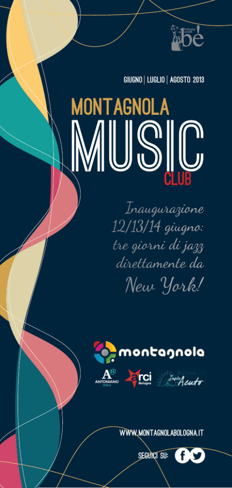 BN GIUGNO LUGLIO AGOSTO 2013 Montagnola music club Inaugurazione 12/13/14 giugno: tre giorni di jazz direttamente da New York! ANTONIANO Onlus www.montagnolabologna.it SEGUICI SU: Montagnola music Dal 12 giugno al 3 agosto club Il parco della Montagnola E’ uno dei polmoni verdi della cittA’, il piU’ antico parco situato all’interno del centro storico. La programmazione proposta ha lo scopo di rafforzare questa peculiarita’, aumentandone la visibilita’ e la fruibilita’ attraverso una serie di iniziative culturali che nel corso della stagione estiva si rivolgeranno all’intera cittadinanza. La rassegna sara’ improntata per la maggior parte alla cultura musicale jazzistica nelle sue varie direzioni stilistiche, che In qualche caso si intreccera’ con alcuni aspetti della musica classica e contemporanea: un appuntamento con il Soul del Porretta Soul Festival, un concerto di musica classica cameristica, in memoria delle vittime della strage del 2 agosto 1980, due serate di video intrattenimento ed happening d’arte con Apparati Effimeri. Serate originali e diverse fra loro per arricchire il panorama della proposta bolognese. Direzione Artistica: Marco Coppi - Mauro Tedesco SERVIZIO BAR, FOOD & BEVERAGE a cura di SESTO ACUTO BISTROT Orari di apertura: dal 5 giugno al 3 agosto, tutti i giorni dalle 12.00 a chiusura del Parco. INFO CONCERTI E PRENOTAZIONE TAVOLI: 388 7717506. INFO Segreteria Parco della Montagnola – Casa dei Colori, Via Irnerio 2/3 40126 – Bologna Tel/fax 051 199 84 190 - info@montagnolabologna.it www.montagnolabologna.it - www.facebook.com/montagnola Orari (Fino al 31/07): lun. - ven. 15.00-18.00 AREA WI-FI La navigazione gratuita e senza fili di Iperbole si allarga e coinvolge anche il Parco della Montagnola. ! In caso di maltempo gli spettacoli si svolgeranno all’interno della Tendostruttura Spazio Verde. Tutti gli spettacoli sono ad ingresso gratuito. PRIME TIME TRIO Mercoledì 12 / Giovedì 13 / Venerdì 14 giugno Area Spettacoli Ore 21.15 Tre giorni di inaugurazione direttamente da New York! Dalla scena jazzistica newyorchese un trio di eccellenza inaugura la manifestazione in Montagnola. Un incontro con tre grandi musicisti caratterizzati da carriere internazionali ed esperienze musicali di altissimo livello. Nelle serate di giovedì e venerdì l'apprezzatissimo sassofonista bolognese Piero Odorici si unisce al Trio. Mike Le Donne ......................................................................Pianoforte Daryl Hall ........................................................................ Contrabbasso Joe Farnsworth ......................................................................... Batteria Special Guest Piero Odorici ..................................... Sax Tenore GIUGNO 2013 JIMMY VILLOTTI TRIO Sabato 15 giugno Area Spettacoli Ore 21.15 Villotti è parte importante della storia della musica bolognese e nazionale. In formazione di trio le sue capacità musicali creative, tecniche ed espressive, regalano swing ed emozioni di pregio. Jimmy Villotti .............................................................................Chitarra Mirko Scarcia ............................................................... Contrabbasso Fabio Grandi ............................................................................... Batteria GIUGNO 2013 Domenica 16 giugno Area Spettacoli Dalle ore 14.00 Festa della Musica! “50 anni con il Piccolo Coro” L’Antoniano festeggia il compleanno del Piccolo Coro “Mariele Ventre” con una giornata di musica e giochi. “ “ Un pomeriggio di allegria insieme ai Cori della Galassia dell'Antoniano provenienti da tutt'Italia e alle Selezioni Nazionali dello Zecchino d'Oro. Dalle 20.30 poi, sfavillante concerto dei ragazzi delle Verdi Note dirette dal maestro Stefano Nanni. GIUGNO 2013 CHIARA PANCALDI QUARTET Mercoledì 19 giugno Area Spettacoli Ore 21.15 La cantante bolognese presenta il suo disco "The Song is You" accompagnata da un trio di impeccabili musicisti, proponendo brani tratti dalla tradizione classica del jazz riarrangiati in chiave personale ed eclettica. Chiara Pancaldi .............................................................................. Voce Emiliano Pintori ................................................................... Pianoforte Mirko Scarcia ..............................................................Contrabbasso Alessandro Minetto ...............................................................Batteria GIUGNO 2013 VALERIO PONTRANDOLFO QUARTET Giovedì 20 giugno Area Spettacoli Ore 21.15 Il quartetto guidato dal sassofonista Valerio Pontrandolfo e composto da musicisti presenti da tempo nella scena jazzistica nazionale ed internazionale, proporrà alcune tra le melodie più conosciute del vasto repertorio della canzone americana. Verranno eseguiti brani dei grandi compositori del Novecento (George Gershwin, Richard Rodgers, Cole Porter, Jerome Kern e Irving Berlin) rielaborati dai membri del gruppo, oltre a brani originali di jazzisti come John Coltrane, Thelonious Monk, Clifford Brown e Charlie Parker. Valerio Pontrandolfo ..................................................... Sax Tenore Fabrizio Puglisi...................................................................... Pianoforte Luca Pisani ....................................................................Contrabbasso Alessandro Minetto ................................................................Batteria GIUGNO 2013 LE TRAIN BLEU Venerdì 21 giugno Area Spettacoli Ore 21.15 Le suggestioni e i linguaggi sonori della Francia dell’inizio del XX secolo sono lo spunto per i brani composti dal Trio Le Train Bleu, I colori "impressionisti" di Debussy, i disegni espressivi di Satie e Honegger fanno da sfondo e si intrecciano con pronunce jazzistiche e improvvisative. Nel concerto vengono proposti anche brani di John Coltrane, Ralph Towner, Chick Corea, Astor Piazzolla. Marco Coppi ........................................