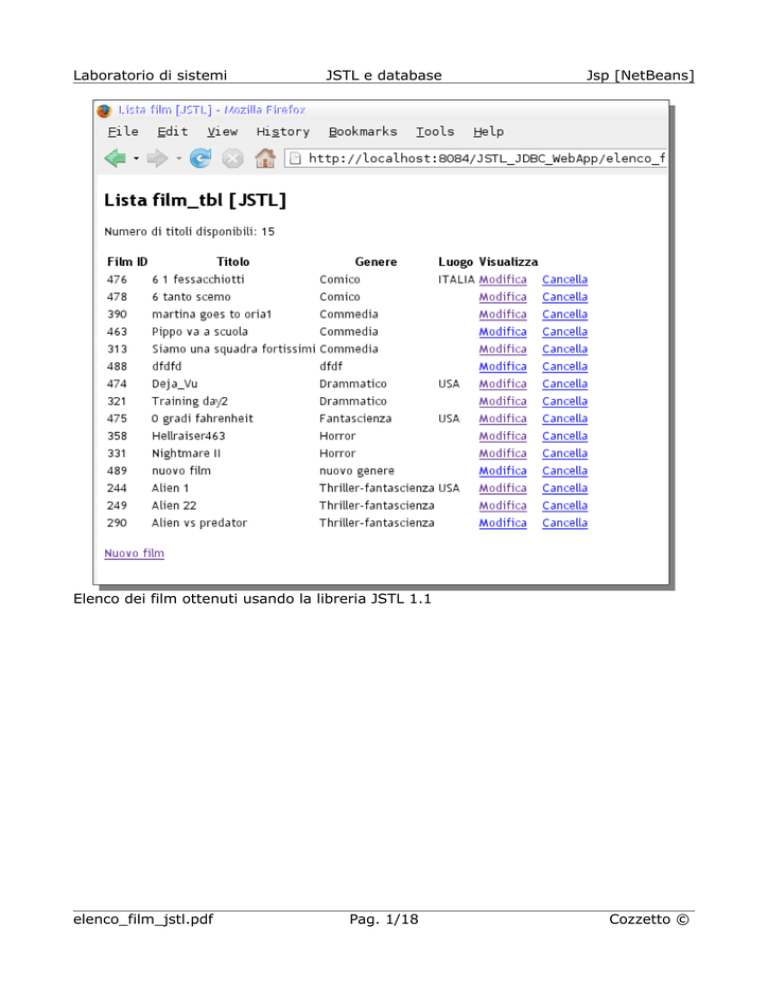 Elenco dei film ottenuti usando la libreria JSTL 1.1
